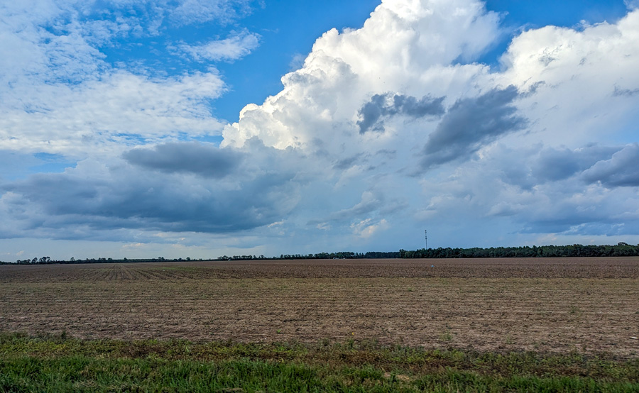 Pictured: A Saturday afternoon shower over McDavid as seen from Molino. NorthEscambia.com photo, click to enlarge.