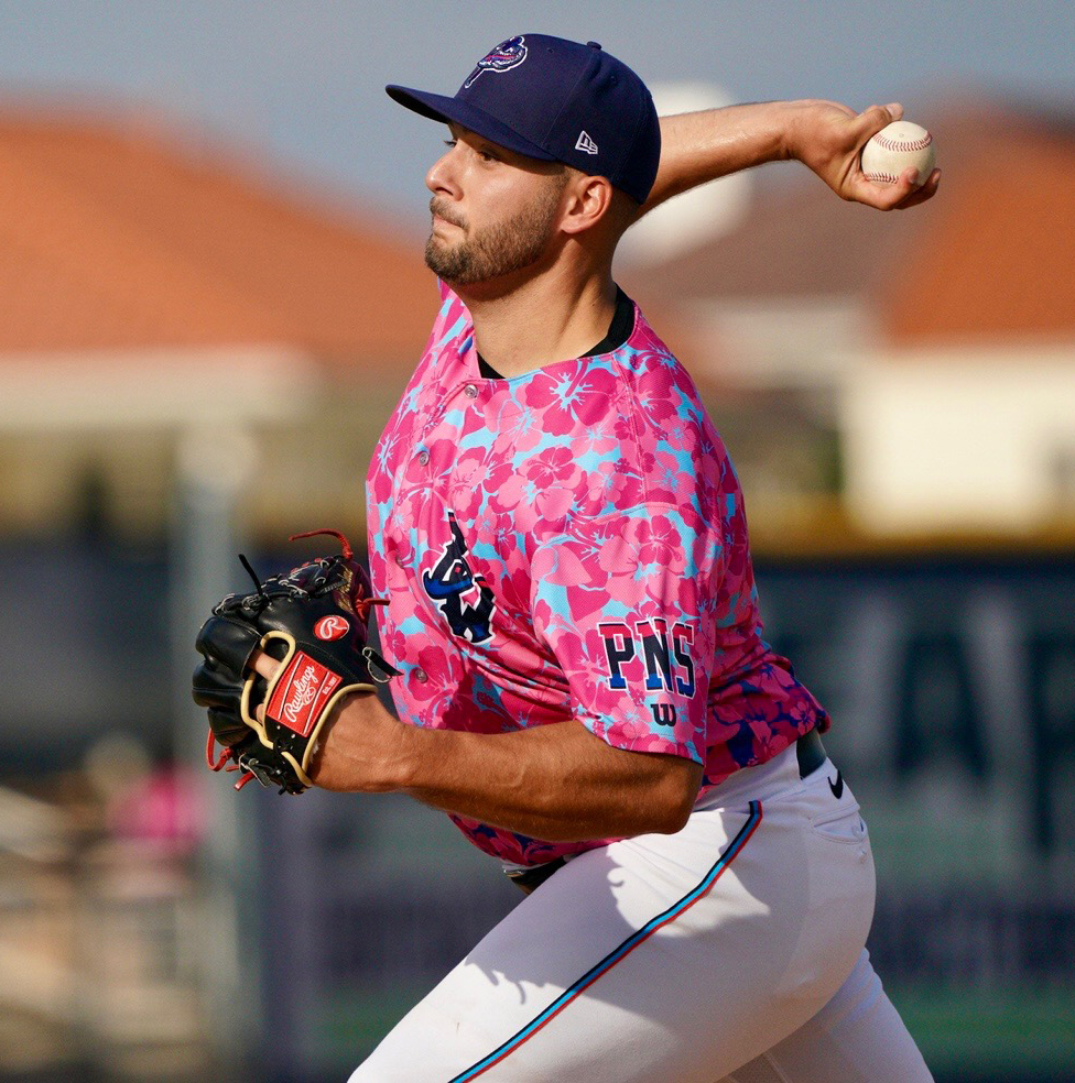 The Blue Wahoos halved the deficit without getting a ball in play. Jorge Caballero was hit by a pitch, Jakob Marsee walked, Paul McIntosh was hit by a pitch, then Caballero scored on a two-out balk.