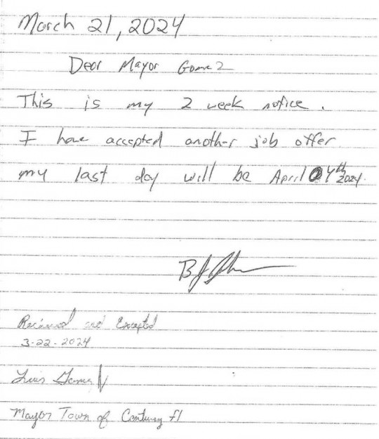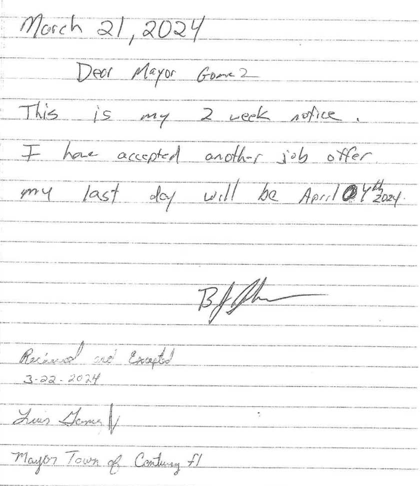 Gas operator Billy “B.J.” Johnson submitted his two weeks’ notice to Mayor Luis Gomez, Jr. on March 21, stating that his last day would be April 4.