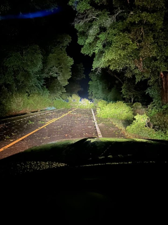 Tens of thousands were left without power. Trees, power lines and power poles were reported down across the area, including Highway 99, Highway 99, Nokomis Road, Byrneville Road, Morristown Road, Highway 99A and others. Highway 97 was completely closed by downed power lines, and one vehicle reportedly collided with a downed power pole. Additionally, a vehicle reportedly hit a tree that was down on Highway 29 near the paper mill in Cantonment. and a vehicle hit a downed tree on in the area of Highway 29 and Bluff Springs Road (pictured below).