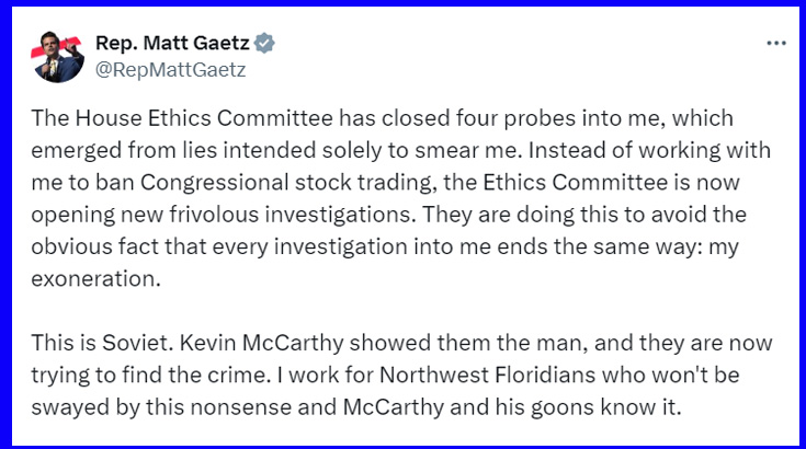 Gaetz released the following statement on social media: