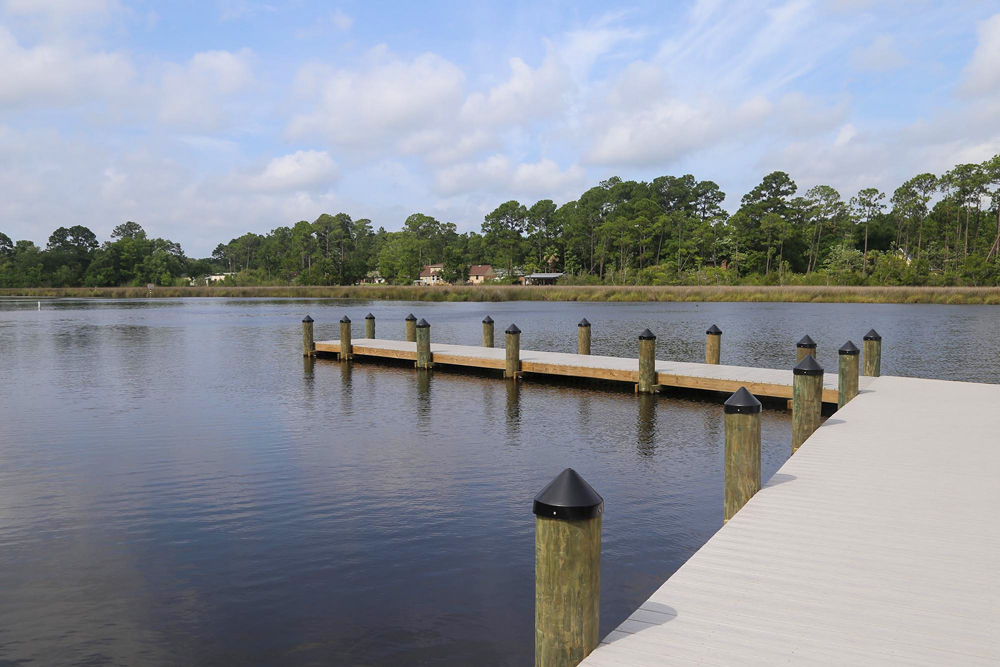 The new 40-acre facility is located on Heron Bayou and includes a two-lane boat ramp, 62 parking spaces for vehicles with trailers, 22 parking spaces for vehicles without trailers, and a stormwater treatment facility. In addition, a new channel measurin 2,260 feet long by 40 feet wide and a depth of five feet was dredged from the launching facility to Perdido Bay. Additional passive recreational opportunities include a landing area along the Perdido paddling trail with two campsites and 11 acres of wetlands placed into conservation.