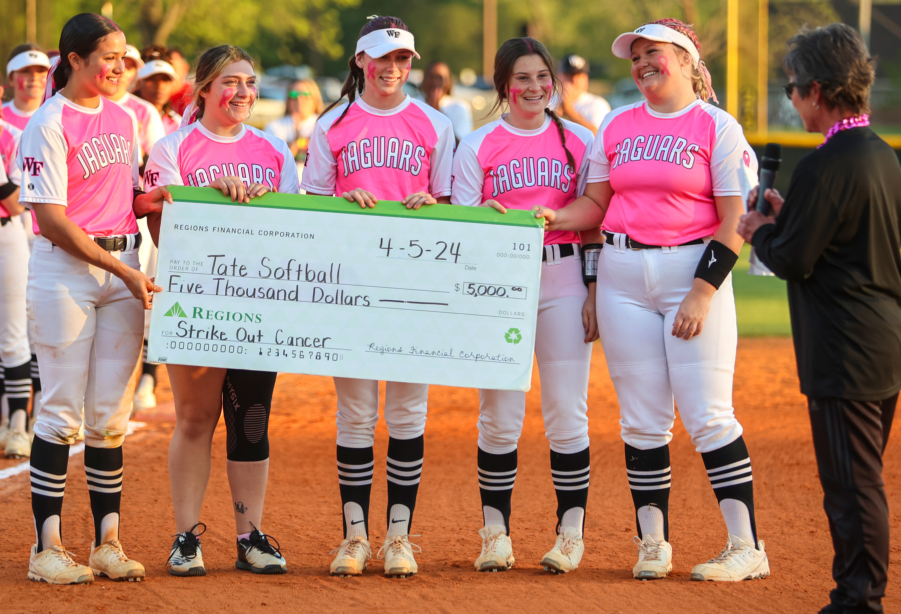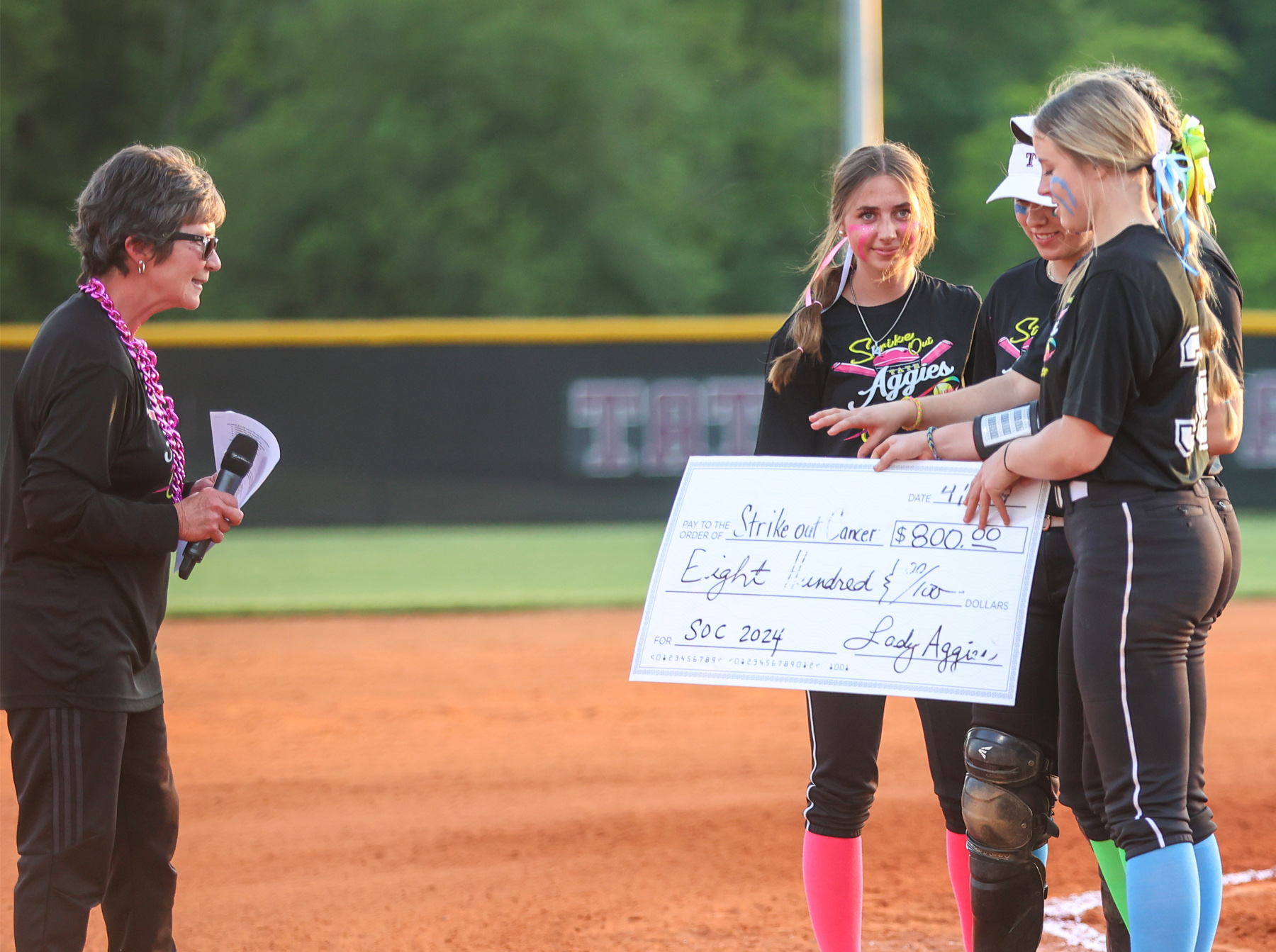Tate Lady Aggies Present $25K From Strike Out Cancer Game, Surpassing $200,000 For The Fight Against Cancer