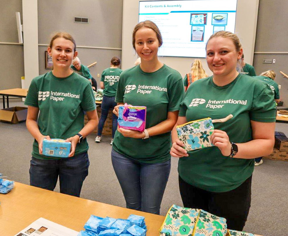International Paper’s fluff pulp goes into more than 100 billion menstrual care pads each year. The event is part of International Paper’s commitment to addressing a critical need in the communities where IP employees live and work by mobilizing people, products, and resources.