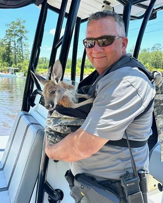 Santa Rosa Sheriff’s Office Deputy James Hendry took a photo with the kangaroo as he patrolled the Blackwater River over the weekend.