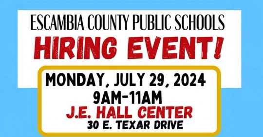 The Escambia County Public Schools Human Resource Services Department will host a job fair on Monday, July 29, at the J.E. Hall Center.