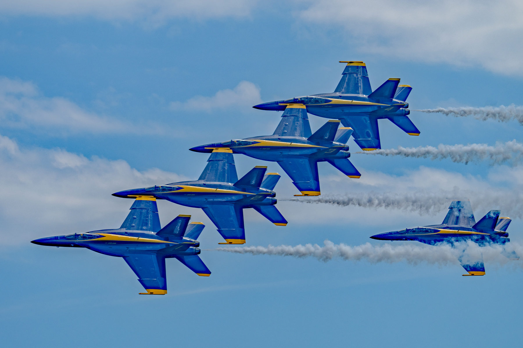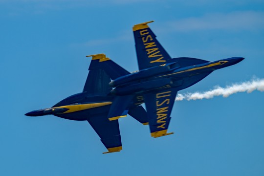 For the next 45 minutes, spectators will get a glimpse of the Blues’ aeronautic maneuvers like the Diamond Dirty Loop, the Double Farvel, the Vertical Pitch, the Fleur-de-Lis, the Opposing Knife-Edge pass, and the crowd-favorite Sneak Pass. These are just a few of the mind-blowing displays of choreographed precision flying the Navy’s flight demonstration team has perfected over the past 78 years.