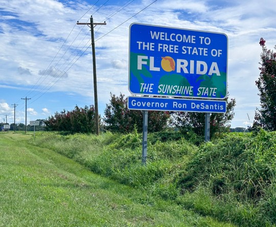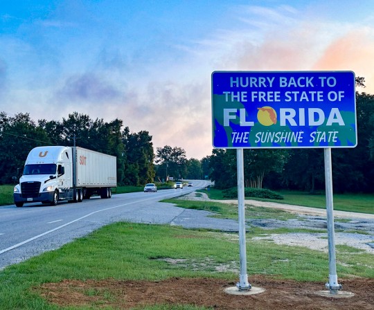 Motorists entering the state are now greeted by new “Welcome to the Free State of Florida” signs.