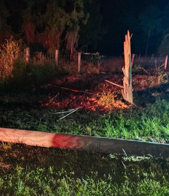 The crash snapped a utility pole and downed powerlines, causing an outage for about 50 Escambia River Electric Cooperative customers on O.C. Phillips and Pineville roads.