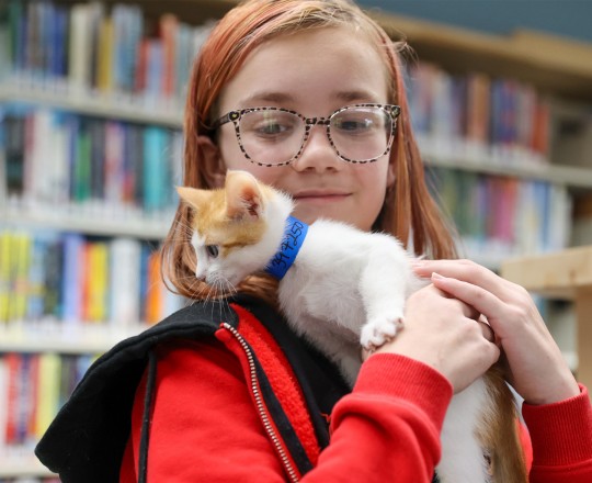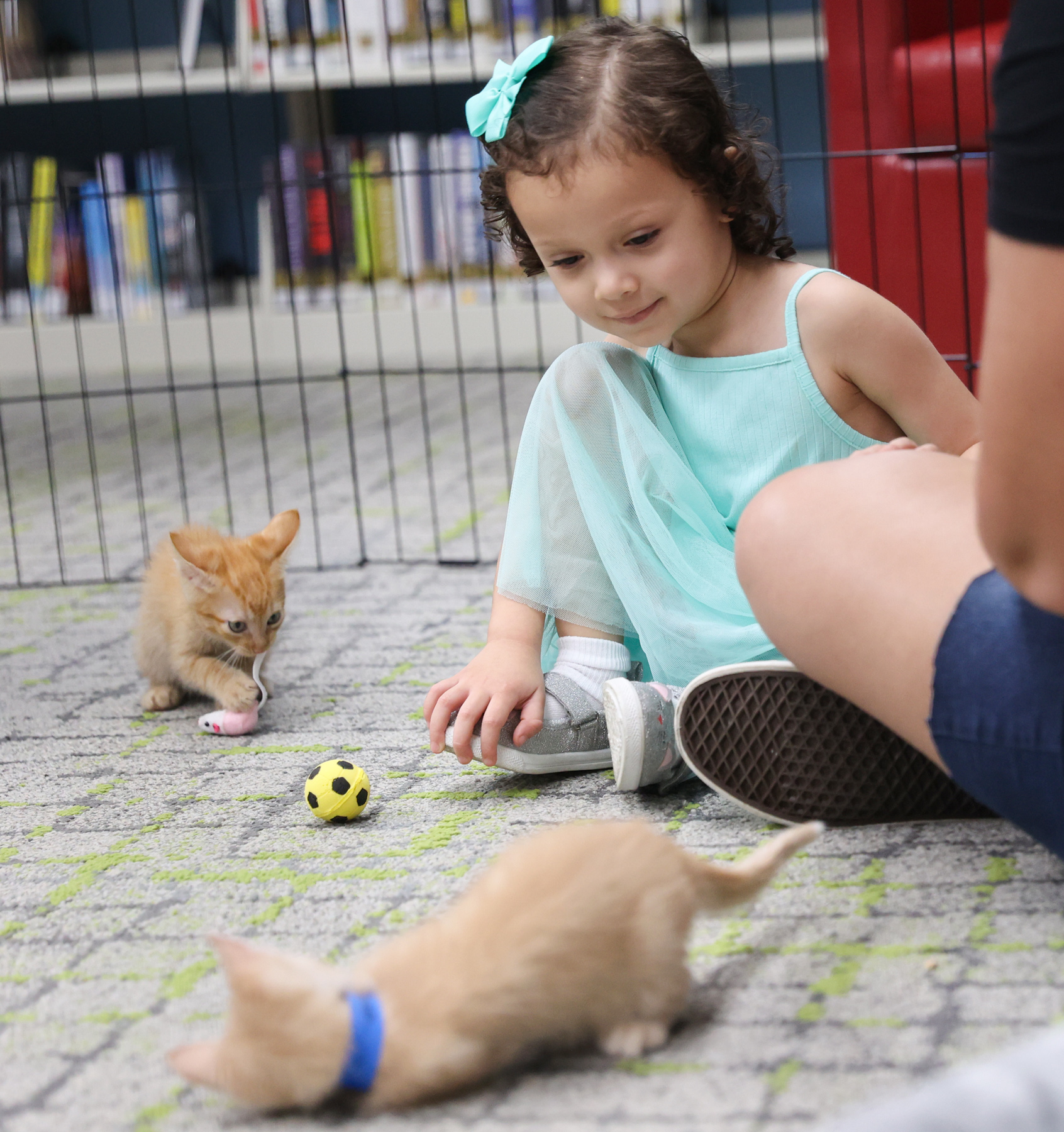 It was the e purr-fect opportunity for library patrons to meet several kittens a relaxed and welcoming environment.