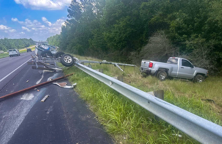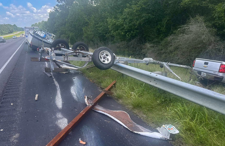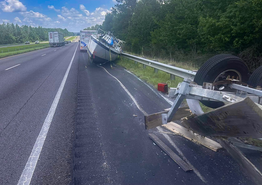 A crash involving a pickup truck towing a trailer with a boat closed one lane of I-65 in Escambia County, Alabama, for about two hours Saturday afternoon.