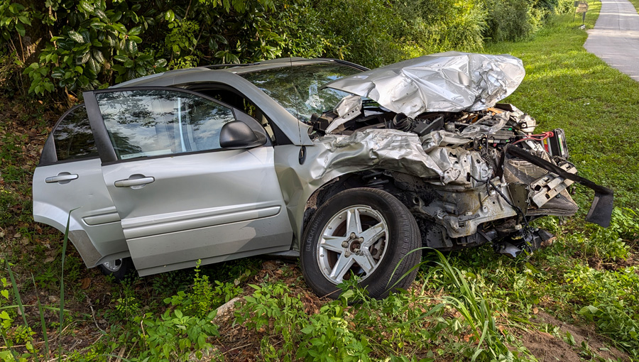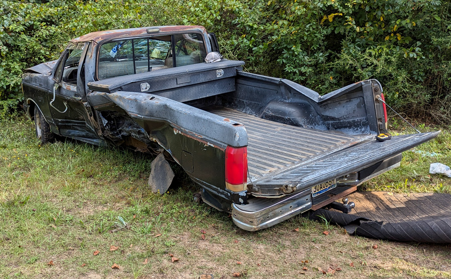 The pickup rolled once, coming of rest on the shoulder of Highway 168. The SUV came to rest in a ditch in the corner of the intersection.