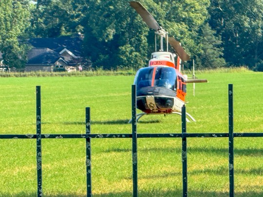 The aircraft crew could be seen up and walking around out of the helicopter, which suffered no obvious damage in the incident.