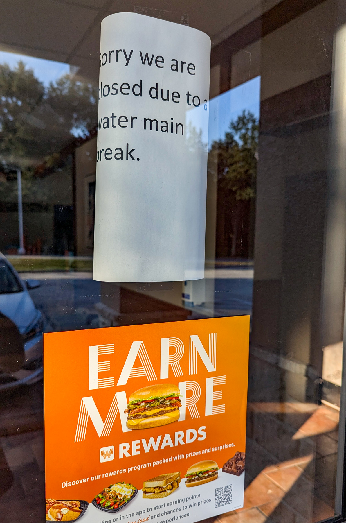 Due to the water main break, the Whataburger restaurant on North Century Boulevard closed for the day.