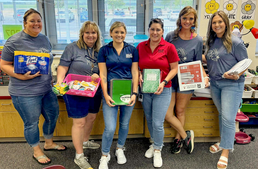 A group of 13 Navy Federal Credit Union employees donated about 300 school supply items to Molino Park Elementary School. Photos for NorthEscambia.com, click to enlarge.