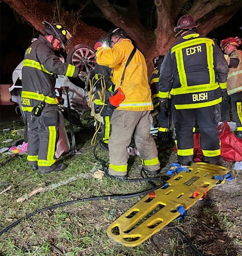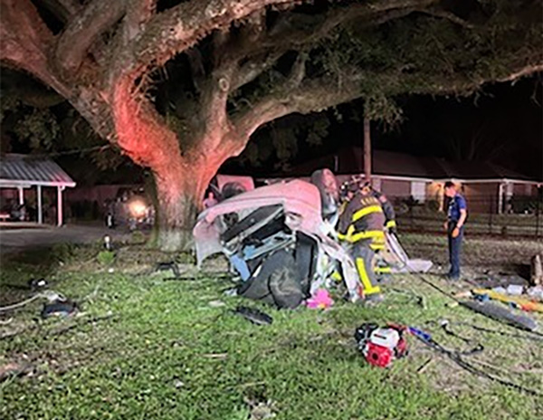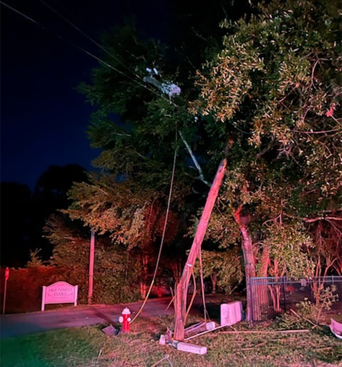 A driver lost control of their vehicle on Pine Forest Road near Amanda Lane and crashed into a utility pole at the entrance to the Pine Forest Oaks Townhomes. The vehicle overturned and came to rest upside down in the front yard of nearby residence.