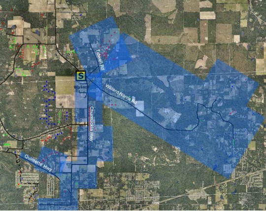 The outage is set to begin at 11 p.m. and is expected to last approximately four hours, with a projected end time of 3:00 a.m. on Saturday. It will impact cooperative customers served by the Wallace substation (depicted on the map in blue, click to enlarge.). This includes customers along and near portions of Willard Norris Road, Chumuckla Highway, Tidwell Road, and Quintette Road.