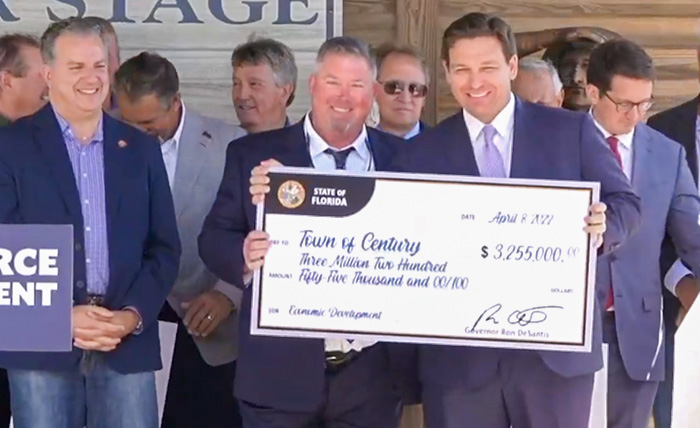 In April 2023. Florida Gov. Ron DeSantis awarded $3.255 million to the Town of Century for economic development. The Small Cities Community Development Block Grant was to renovate two community centers — $1.985 million was to renovate the historic Carver Community Center at 7040 Jefferson Avenue and $850,000 was allocated for the Century Community Center (also known as the Ag Building) at the corner of West Highway 4 and Industrial Boulevard to bring it up to current building code and make improvements.