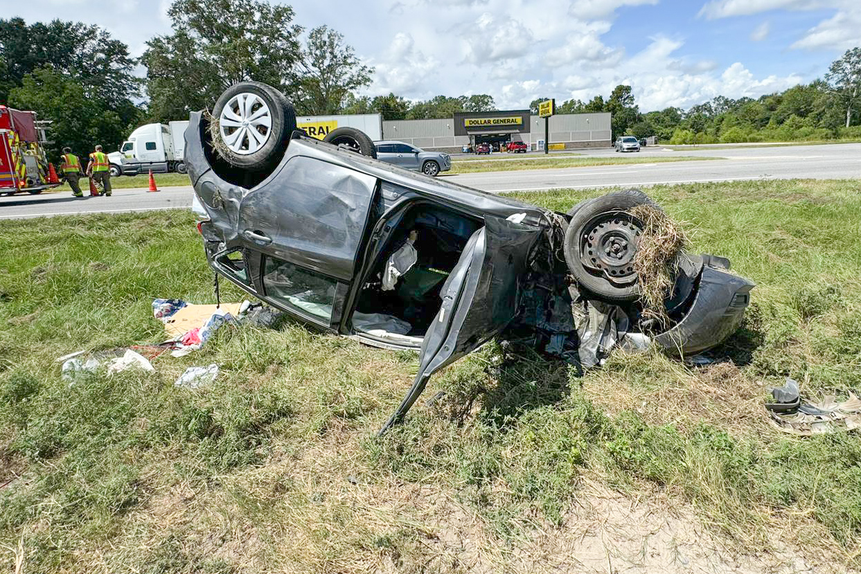 The Versa then overturned in the grass area between Highway 95A and the northbound lanes of Highway 29.