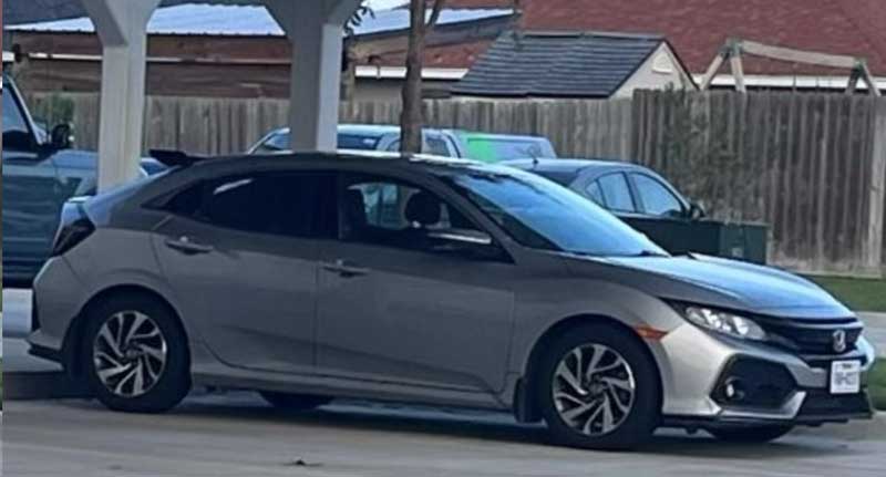 Carpenter was driving his 2017 silver Honda Civic hatchback with a Texas license plate number of TKH-227.