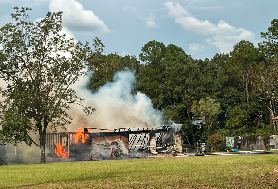 Pictured above and first two photos below Fire rips through a large, detached garage in Cottage Hill Saturday afternoon. Picture bottom photos: The same garage burned in April 2020. NorthEscambia.com and reader submitted photos, click to enlarge.