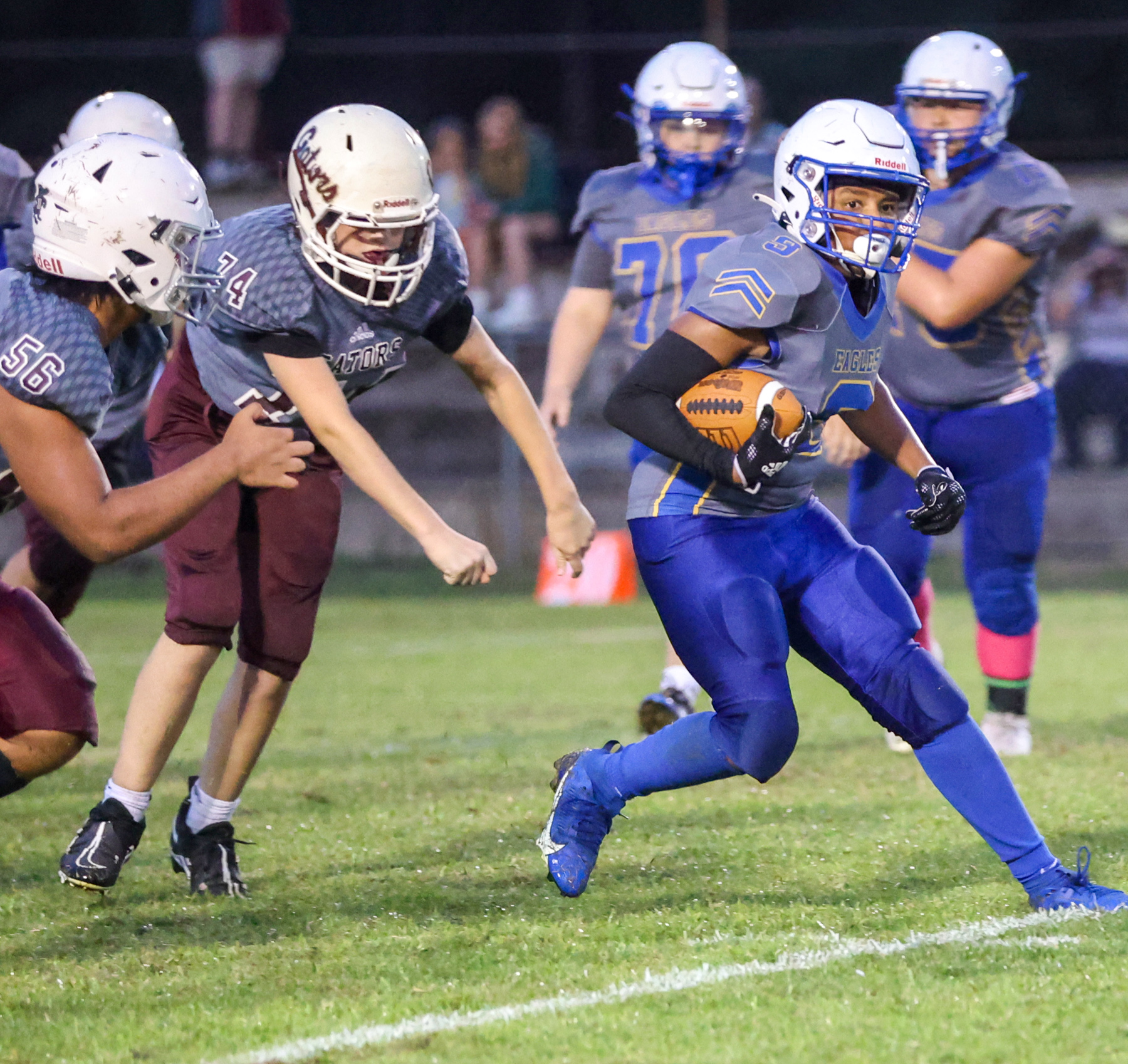 The Baker Gators blank the Ernest Ward Middle School Eagles 28-0 on a soggy Tuesday night in Walnut Hill.