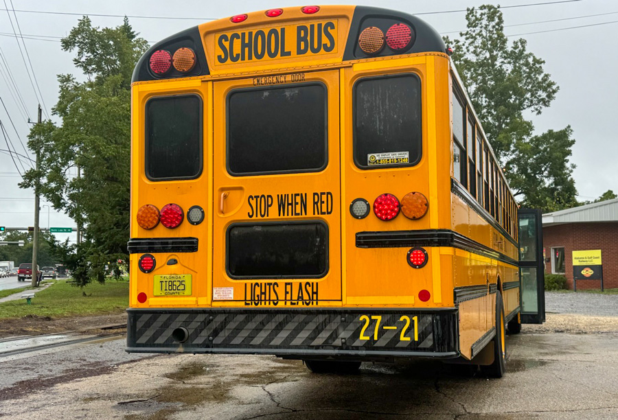 The driver of a Mercedes sedan apparently reared ended Escambia County Public Schools bus 27-21 that was transporting students home from Tate High School.