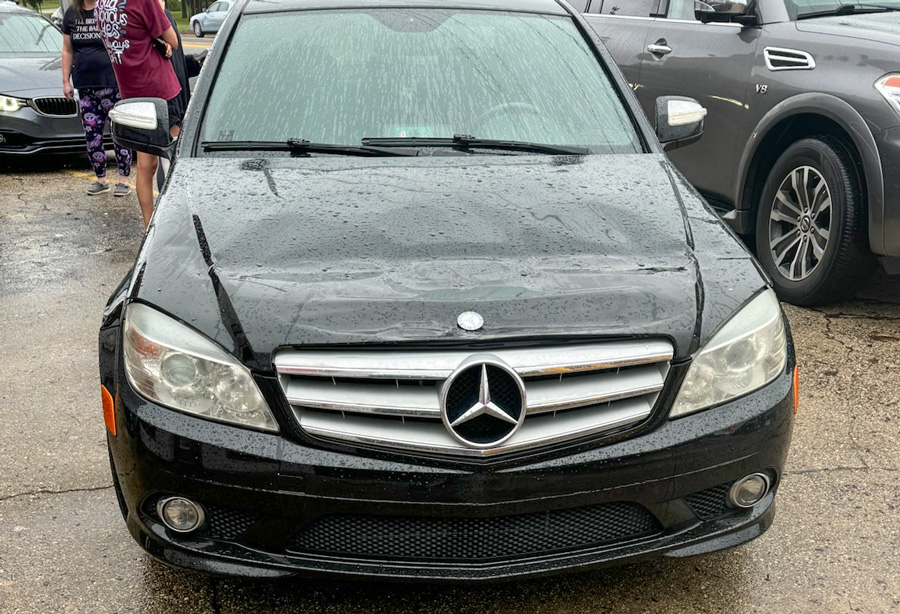 AGAIN, I say. I was taught you go 10% or lower than the speed limit in bad wwather. Car length every 10 mph behind the vehical in front of you! A MERCEDES????
