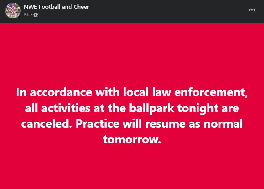 Due to the search, Northwest Escambia Football and Cheer canceled all Monday practices at the park. NWE practices will resume on Tuesday.