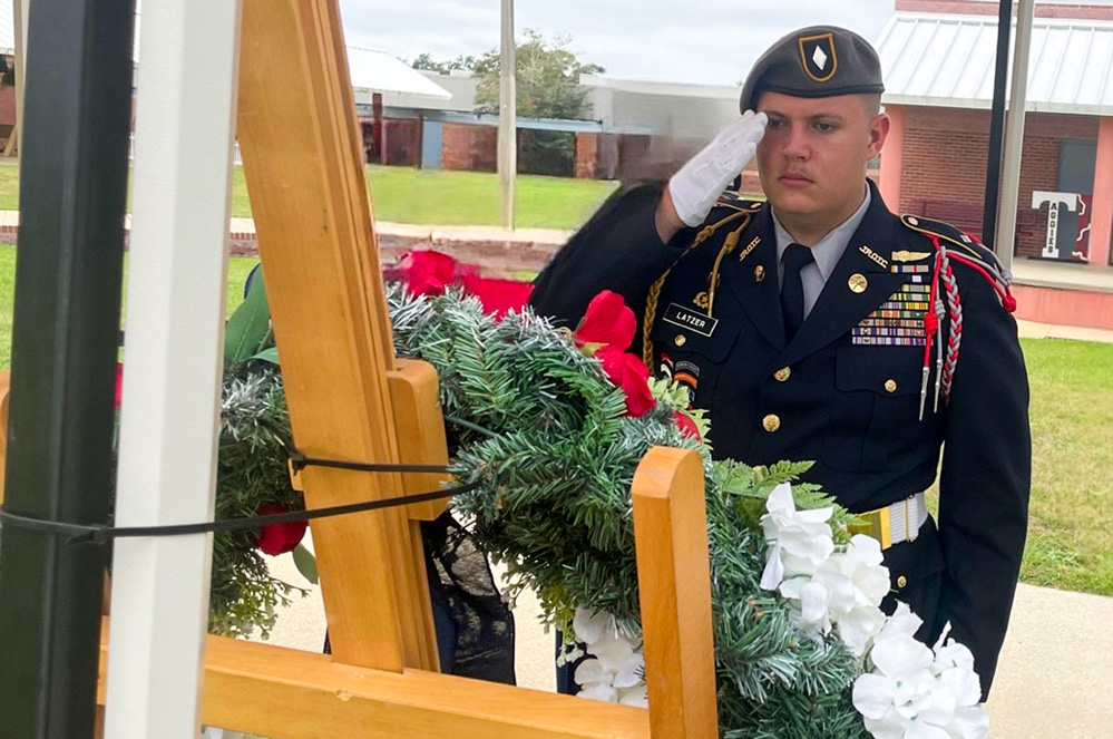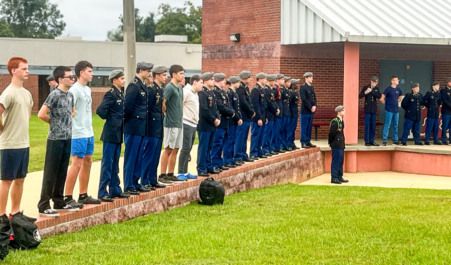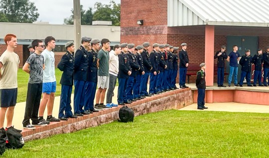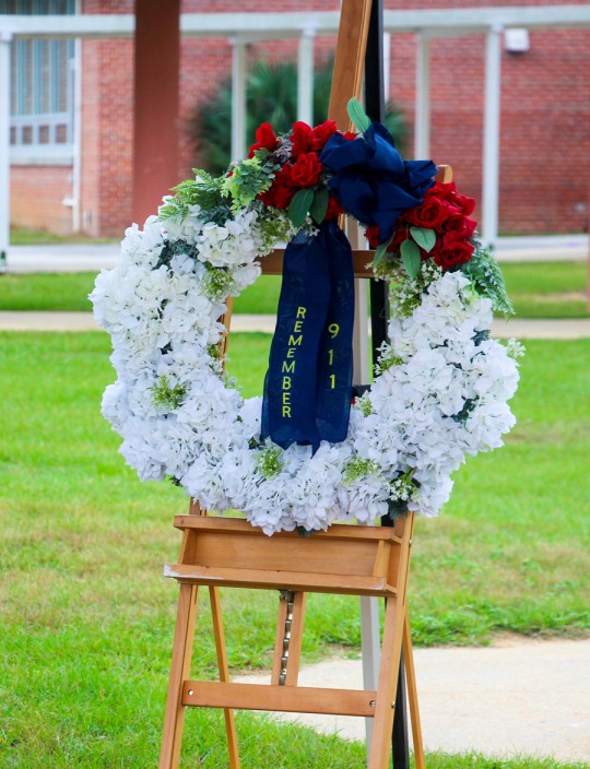 On September 11, the J.M. Tate High School Army JROTC staff held their third annual 911 Ceremony to honor the victims of the tragic events of 2001 and the heroes who lost or risked their lives in its aftermath. The staff arrived at school at 6 a.m. to prepare the courtyard. The ceremony began at 8 a.m. with a moving story from Coach David Bonucchi, who shared his experience from that day.