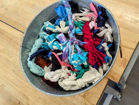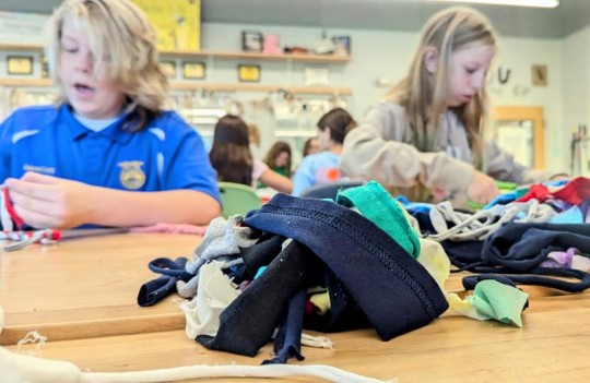 Beulah Middle School FFA members created over 75 dog toys Tuesday using old t-shirts.