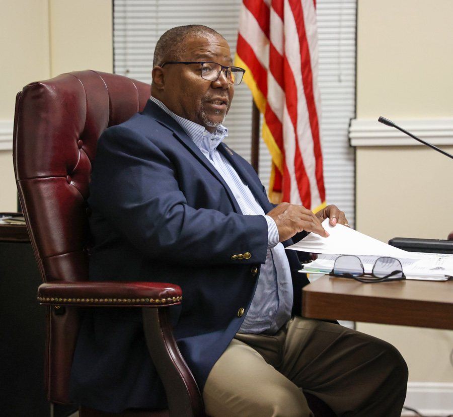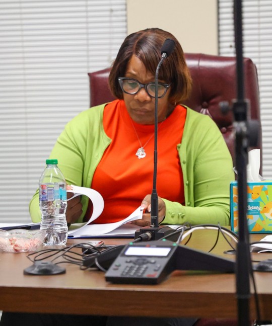 Pictured top: Century council members Henry Cunningham, Shelisa McCall, and Alicia Johnson review insurance proposals. Pictured top inset: Mayor Luis Gomez, Jr. explains insurance proposals to the council. Pictured bottom inset: Council president Dynette Lewis. NorthEscambia.com photos, click to enlarge.