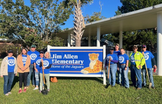 A team from International Paper in Cantonment volunteered at Jim Allen Elementary School. They put a new coat of paint on the school’s basketball games, four square games and installed new basketball nets in a playground refresh.