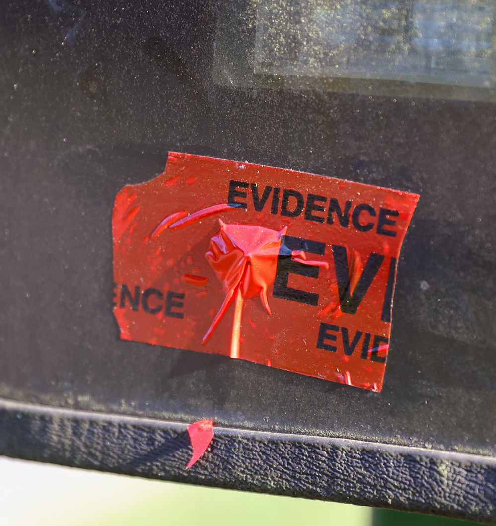 Wednesday, the speed-checking trailer was still in place on Byrneville Road just south of McBride Road. It appeared to be functionally normally, other than a small piece of evidence tape (pictured below).