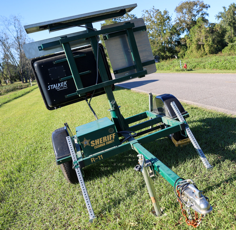 The speed trailers went into service after Sheriff Chip Simmons took office. They can be deployed to areas with a known or citizen reported speed problem. The trailers display the speed of passing vehicles, complete with small flashing red and blue LED lights to attract driver attention.