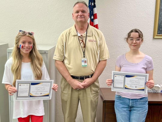 Pictured with principal Michael Sherrill, they are Meeyah Lassitter (left) and Christian Caraway.