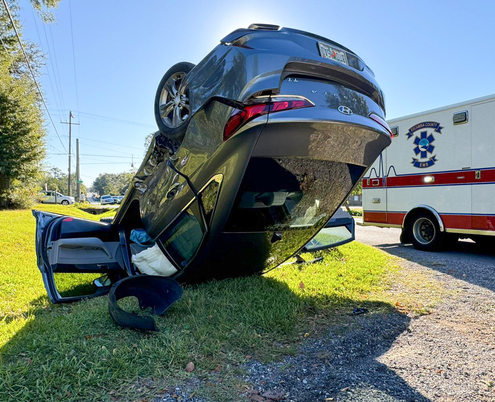 Three people were injured in a rollover crash Wednesday morning near Tate High School.