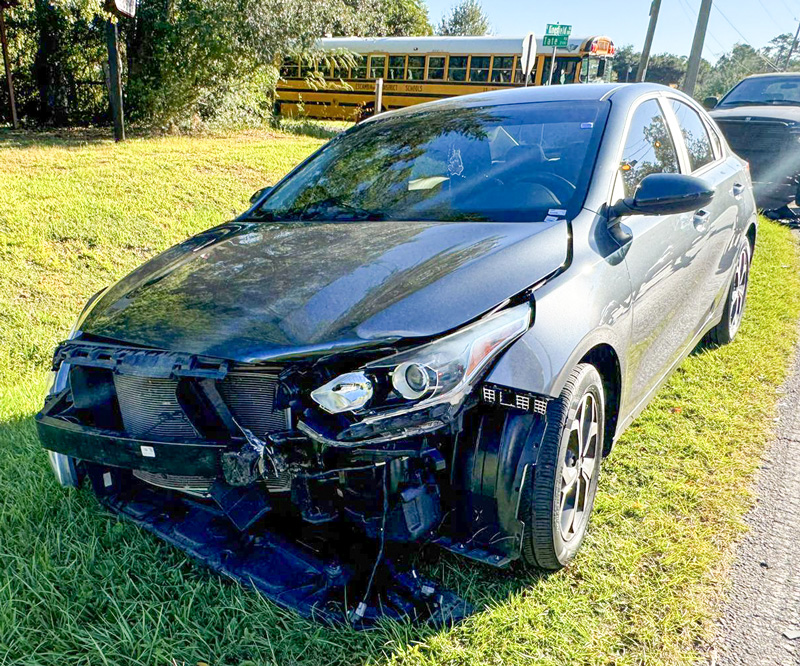 The crash happened about 8:20 a.m. on Kingsfield Road near the intersection with Tate Road and involved two passenger cars. One, a Hyundai Sonata, came to rest upside down in a ditch.