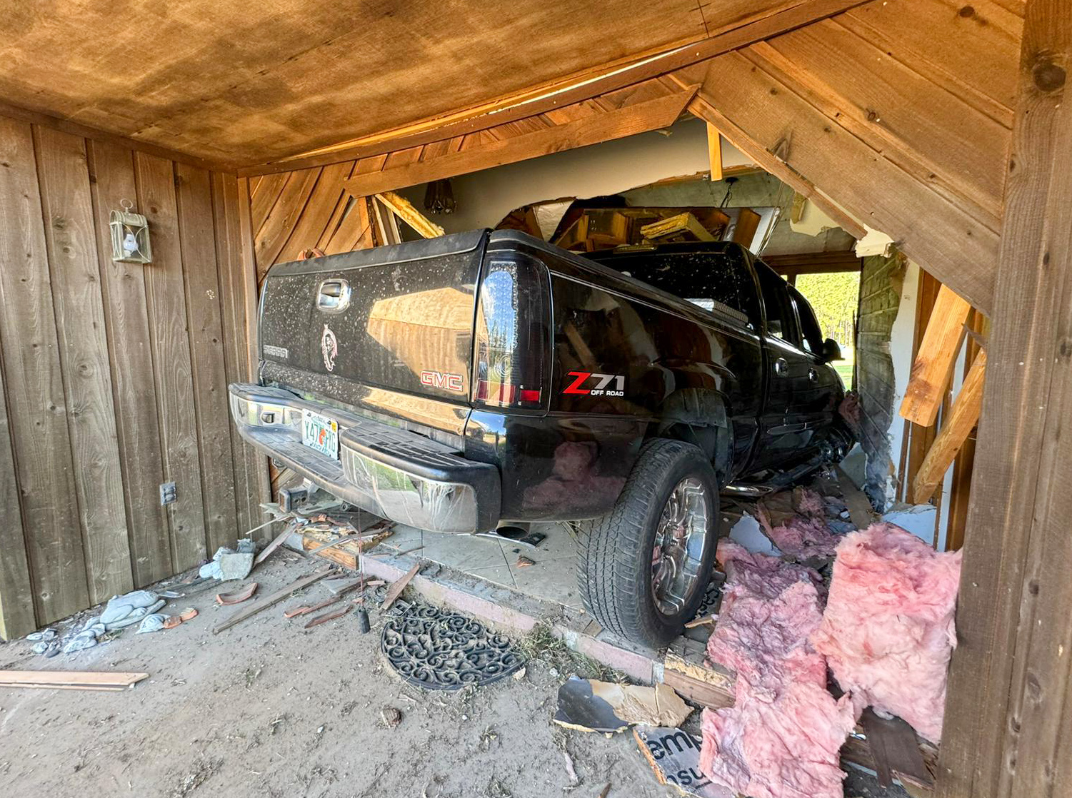 Photo Gallery: Two Injured When Pickup Crashes Through Molino Home