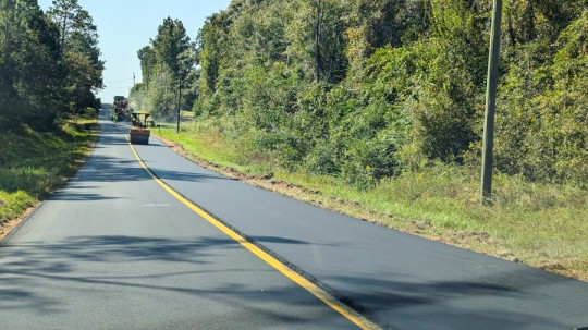 The $1.3 million District 5 project includes resurfaceingsix miles of Pine Forest Road from Highway 97 to Arthur Brown Road. Final thermoplastic striping and reflective pavement markings will be completed about 14 days after paving.