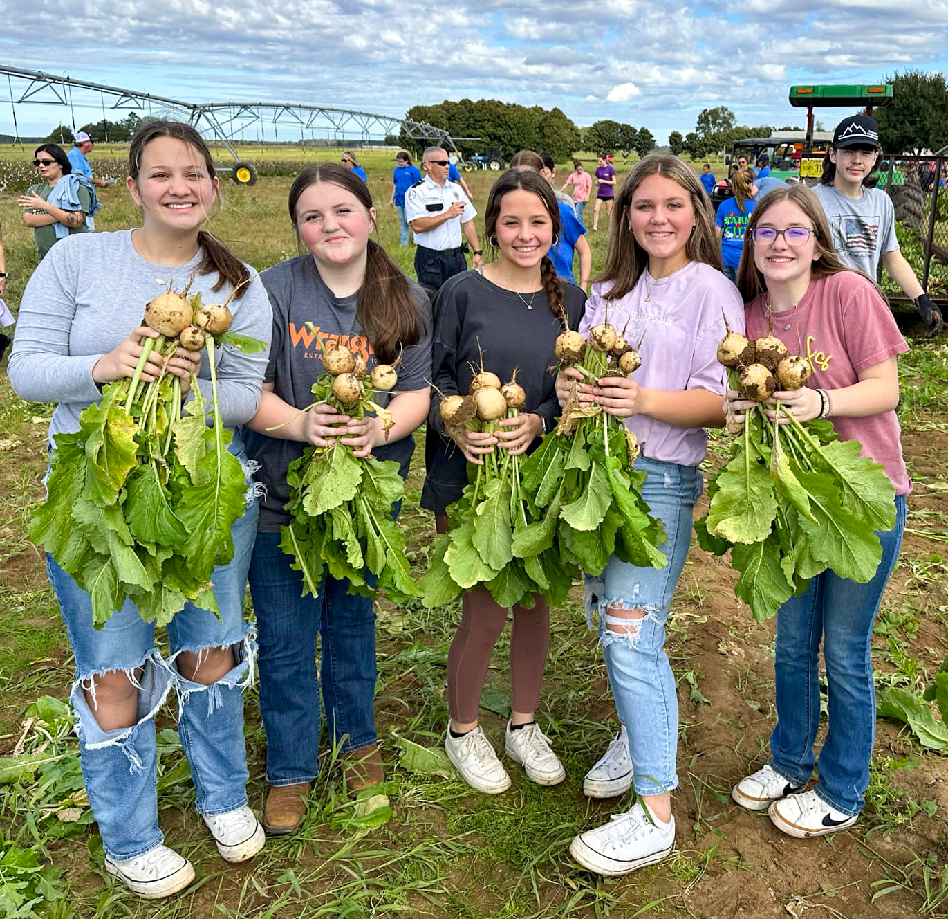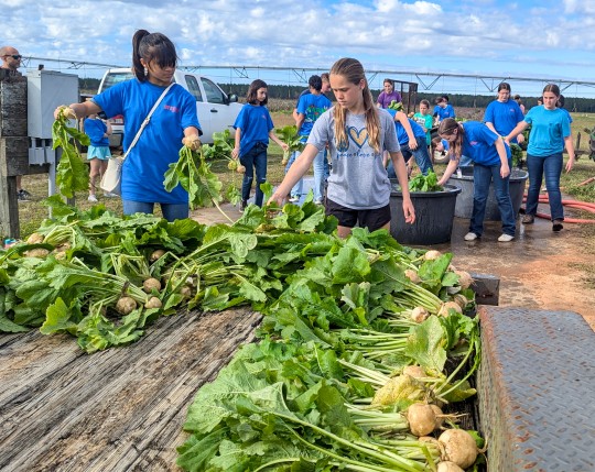 Monday, students and volunteers from Escambia and Santa Rosa counties worked in fields near Jay to harvest vegetables that will help feed 1,000 needy families this week for Thanksgiving.