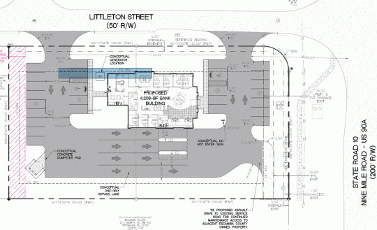The Champions First Credit Union project includes the construction of a 4,208-sf single-story credit union/bank building with a drive-thru on two parcels on Littleton Street at Nine Mile Road, the current site of a car wash.