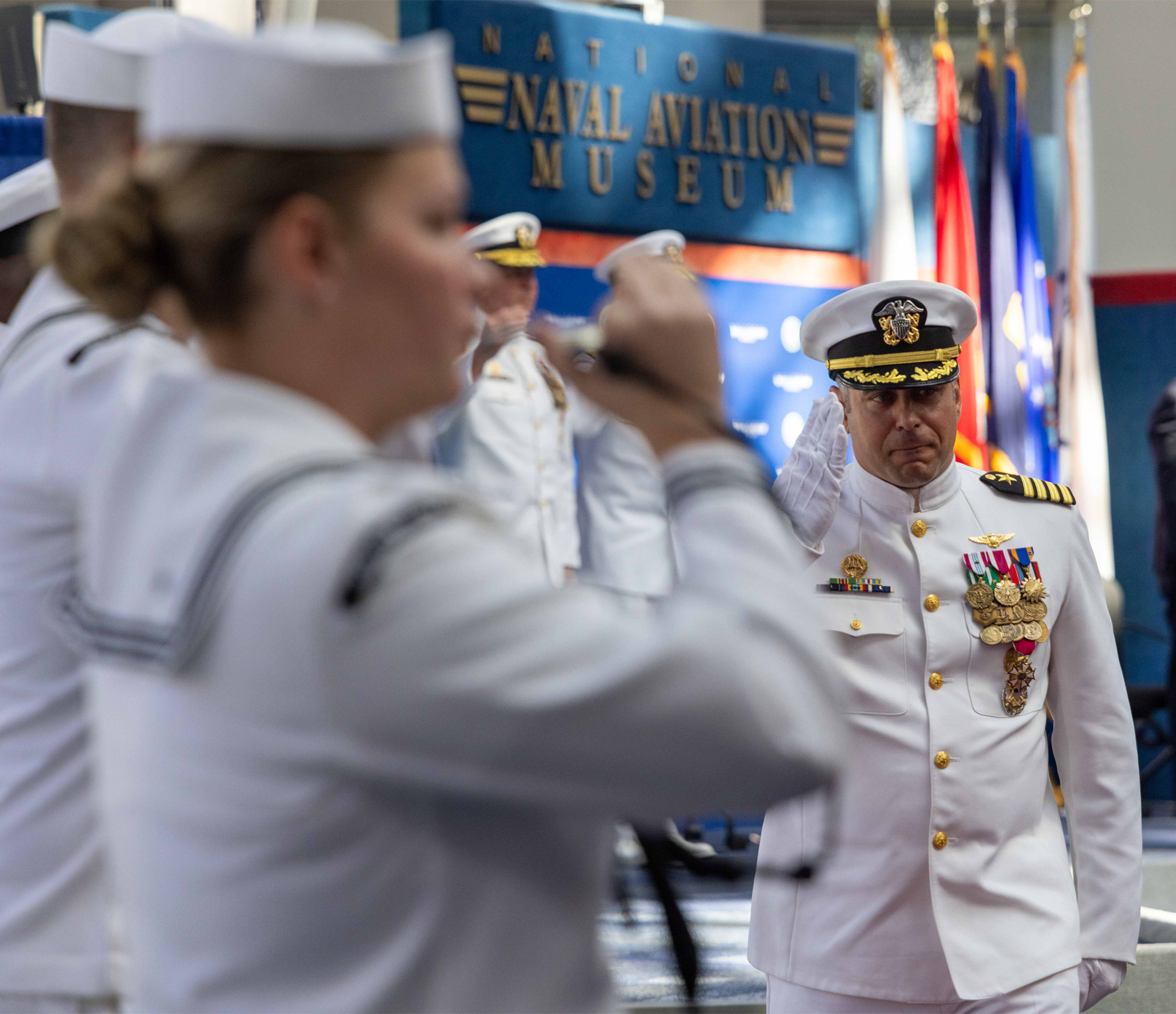 Naval Air Station (NAS) Pensacola Commanding Officer Capt. Chandra “Mamasan” Newman assumed command of the “Cradle of Naval Aviation” from Capt. Terrence “Village” Shashaty Friday during an official ceremony at the National Naval Aviation Museum (NNAM) onboard the installation.