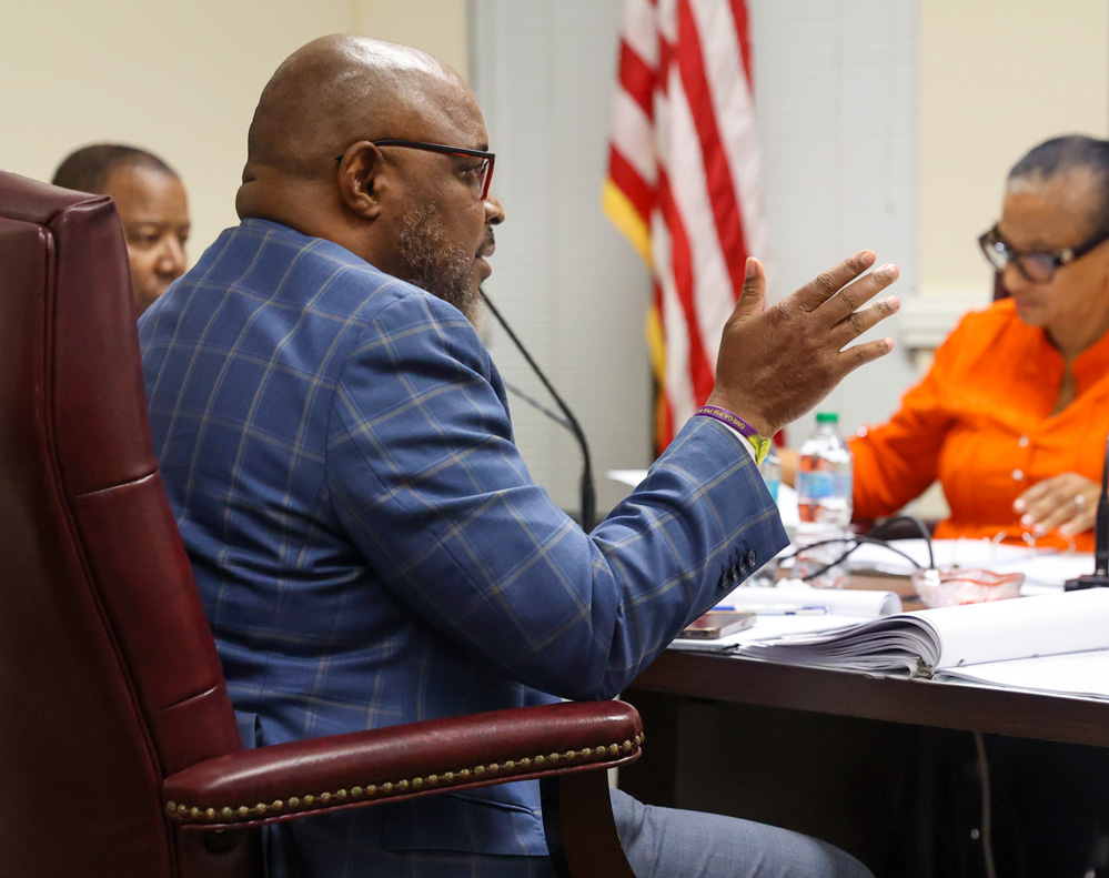 McCall said she voted against paying the invoice more than once, and she declined to name the vendor or specific invoices when asked by Lewis. She did say the invoices were not from Brown or his company.