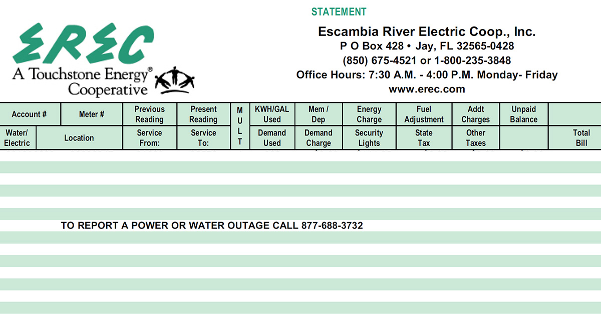 “While prices have been on the rise, Escambia River Electric Cooperative has worked to minimize controllable expenses to keep up with inflation instead of raising rates for members. Unfortunately, the time has come when we are not able to cut controllable costs and keep up with the rising costs. We need to make a modest adjustment to address the rising costs of delivering reliable electric service,” EREC CEO Ryan Campbell said. “After an extensive analysis of our financials, we determined that rising costs are outpacing our revenue projections. Therefore, this adjustment became imperative to continue fulfilling our mission of providing reliable and resilient energy to all our members.”