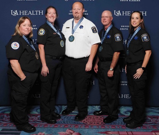 As a result of the hard work, expertise, lifesaving bravery, and steadfastness involved in Hellmich’s rescue and care, the following Escambia County EMS employees were recognized as “Healers” by the University of South Alabama’s USA Foundation: