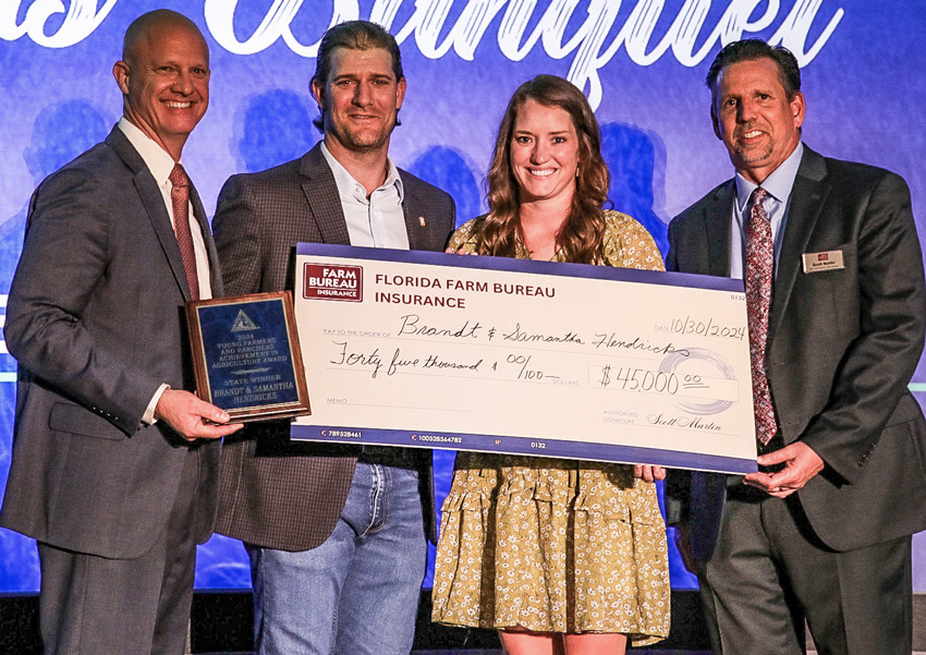 Brandt and Samantha Hendricks of Jay were recently named the state winners of the Florida Farm Bureau’s coveted Achievement in Agriculture award. The couple will advance to the national competition at the American Farm Bureau’s national convention early next year.