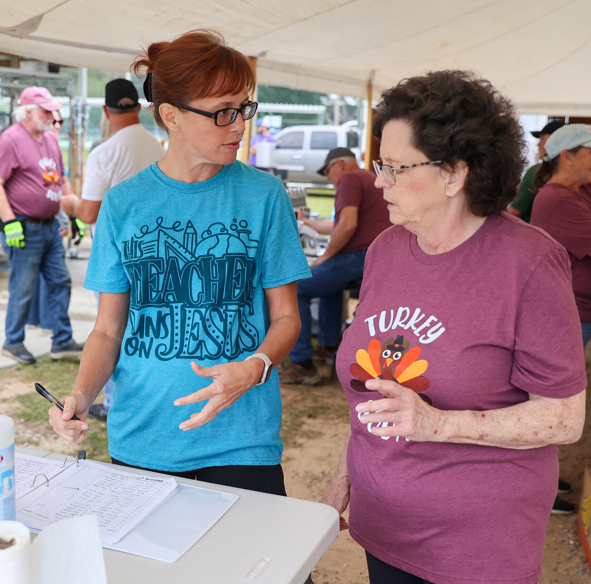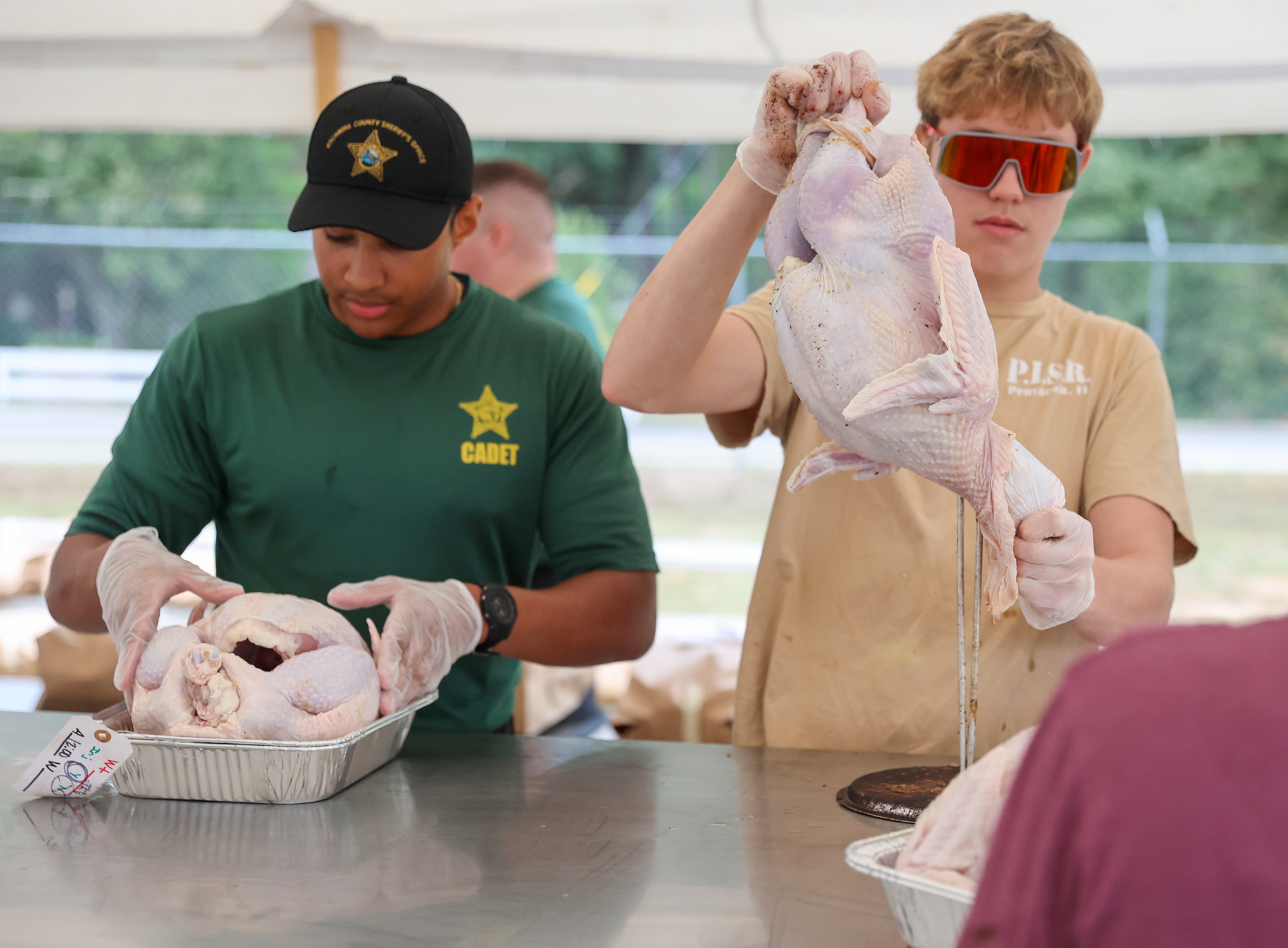 A small army of volunteers worked to deep fry the turkeys to perfection, rows of timers keeping track of the cooking time at a command center of sorts. Cadets from the Escambia County Sheriff’s Office also volunteered to make sure the turkeys were ready to enjoy on Thanksgiving.