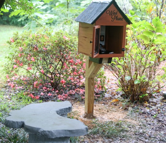 It’s known as a wind phone. It will never ring. No wires, no service, no cell signal, no Wi-Fi. It’s a rotary phone, that’s connected to nothing, except the wind.