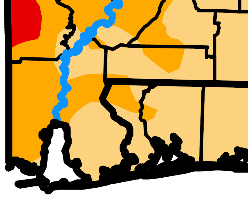 The Walnut Hill, Enon, Molino and McDavid areas in the severe drought, while the remainder of Escambia County are in a moderate drought. The data used for the map includes rainfall through Tuesday.